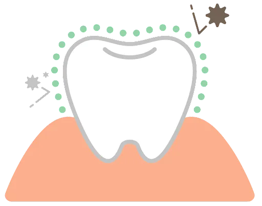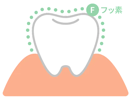 歯の一番外側にあるエナメル質を強くして、虫歯菌が出す酸に溶けにくい歯にします。