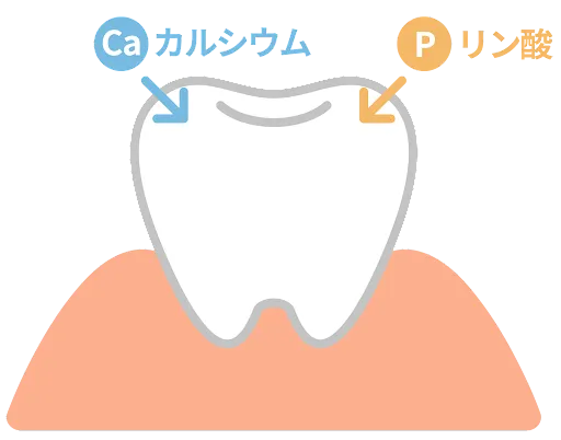 細菌によって歯から溶け出したカルシウムやリンの再沈着を促進し、虫歯を防ぎます。