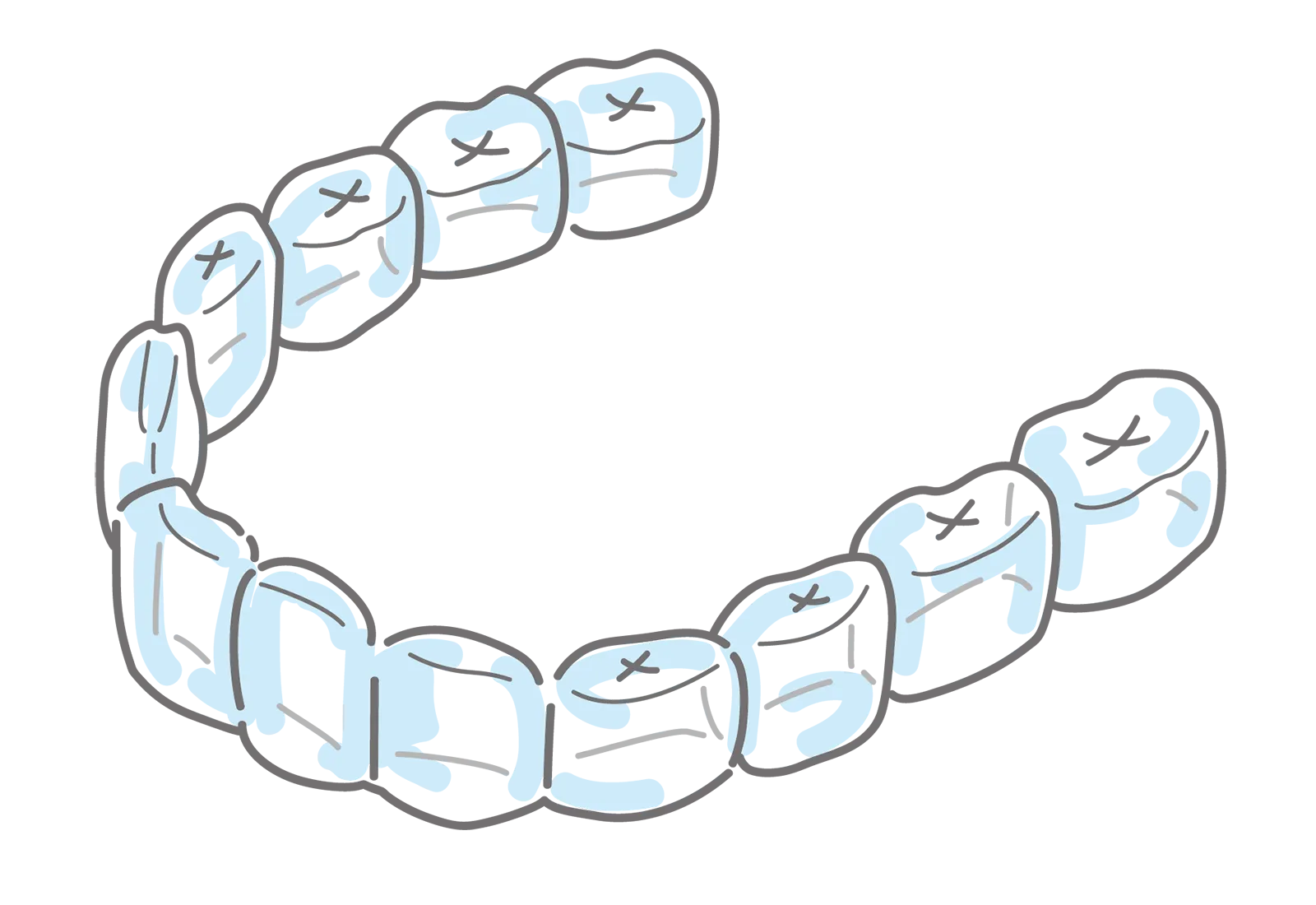 就寝中の歯ぎしりの対策として、最も広く行われているのがスプリント療法です。就寝中にマウスピースを着用することで、歯ぎしりや食いしばりによって歯や顎にかかる力を軽減します。