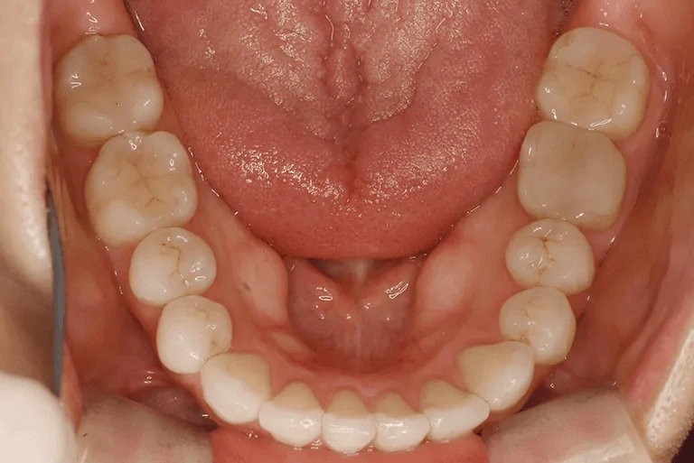 叢生は、歯が重なったり斜めに生えたりすることで起きます。八重歯もこの一種で、歯磨きしづらいために虫歯などのリスクが高まる歯並びです。