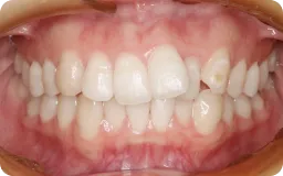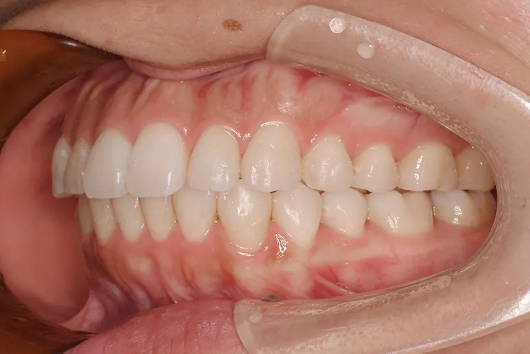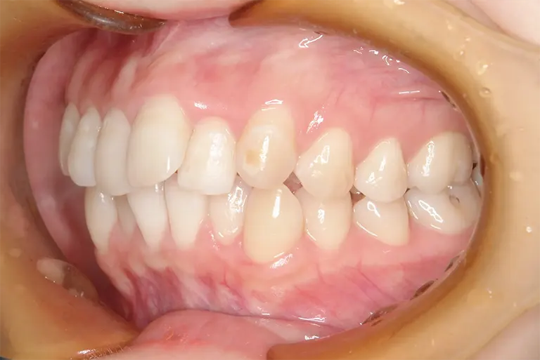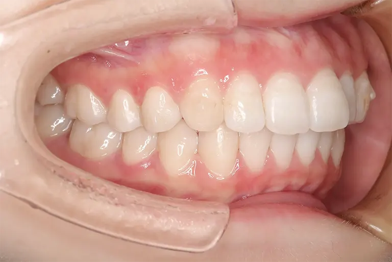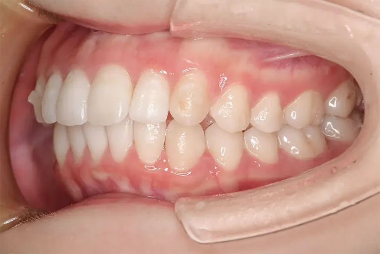 前歯の重なりもきれいにできて、患者さんに満足していただきました。
