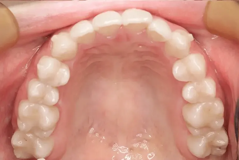 過蓋咬合は、下の歯が隠れるほどに上の前歯が被さってしまう歯並びです。前の歯茎を傷つけたり顎関節症になりやすくなるといった問題があります。